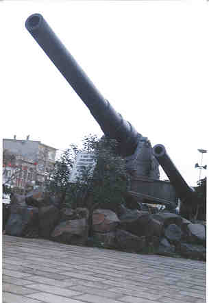 Everywhere you looked there were reminders of the importance to the Turks of what happened to them in 1915. Right in the middle of the main street of Canakkale is a traffic island with these two large guns on display. They had been used in the battle with the British Navy on 18 March 1915. That was the day the British Navy tried to sail through the Dardanelles Straits. |