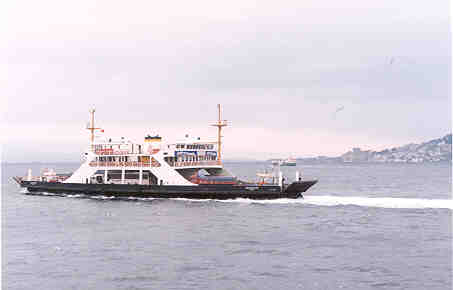 One of the many car ferries crossing the Strait. You can see the fort at Kilid Bahir in the distance. |