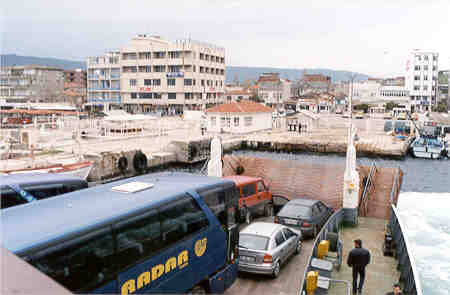 Our ferry boat approaching Gallipoli town. Gallipoli is on the west side of the Dardanelles Straits, while Canakkale is on the eastern side. The large car ferries go from here to Canakkale. It takes about 20 minutes on the ferry. |