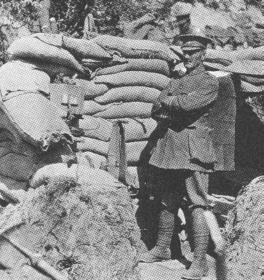 Lieutenant-Colonel Malone is standing outside his dugout. Just by looking at the way he is standing you can see he is a very determined man. Born in England, Colonel Malone was a farmer from Stratford, in Taranaki. He was well over 50 when he went to Gallipoli. A perfectionist, so that everything had to be just right, he did not get on well with many of his fellow officers. They found him difficult to work with. He drove his Wellington Infantry Battalion very hard in training, but later it was they who many times saved the Anzacs by keeping control of Quinn's Post during the terrible days of June to August. He said, "The art of warfare is the cultivation of domestic virtues". Meaning that, by keeping things neat, tidy and organised, the soldiers could get better control over what they were doing. He refused to allow his Wellington men to make what he thought would be suicidal attacks, sometimes refusing direct orders from his leaders. He personally led the successful attack by the Wellington Infantry Battalion which at last captured Chunuk Bair, and he was killed there. Quite possibly, he was killed by New Zealand artillery as they tried to shell the Turks on Chunuk Bair, but hit their own men by mistake. While he led the successful attack on Chunuk Bair, he was also the soldier the Generals decided to blame for not holding the hill top. They said he did not get his men into trenches in the proper places. Comments like this made the New Zealand soldiers very bitter about the generals. The ordinary soldiers thought the dead were being blamed for the incompetence of the generals. Though they never met, it is interesting to see how similar in attitudes to leadership Lieutenant-Colonel Malone is to Colonel Mustafa Kemal. Lieutenant-Colonel Malone was attacking Chunuk Bair, while Colonel Kemal was defending it. Both men wanted things done their way, and made sure it happened through very strong leadership. Both thought very highly of the bravery and courage of the men they lead. |