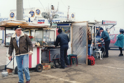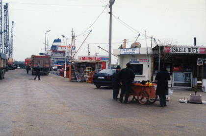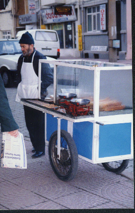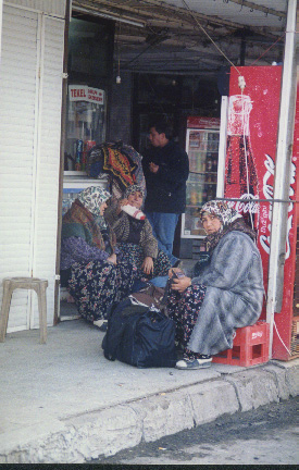 These ladies were waiting for a bus. They have their heads covered with a scarf, and are wearing very long skirts. Most women in Turkey wear this style of clothing as it is part of the Muslim religion to do so. Notice the Coca-Cola machine in the picture. These machines were everywhere. Coke is a very popular drink. |
