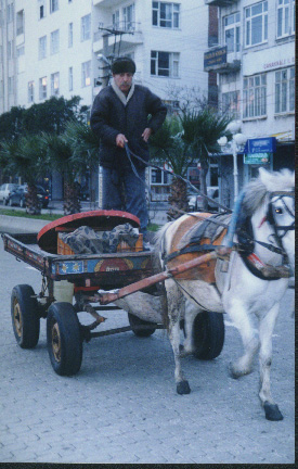 There were lots of these little horse and carts coming through the town all day. The ponies didn't seem to mind the traffic at all. They drive cars on the right-hand side of the road in Turkey. |