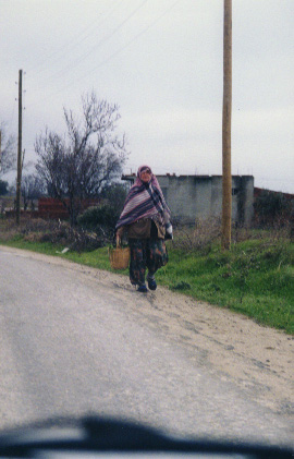 Walking to a small village outside Canakkale. This lady must have walked quite a long way as I could not see any houses for some distance. Again, she has her head and legs well covered. |