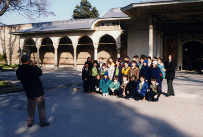 Just as in New Zealand, school children go for class trips to see interesting things. This class was visiting the Topkapi Museum, where much of the interesting history from the days of the Sultans is stored, along with beautiful clothing, pictures and jewellery. |