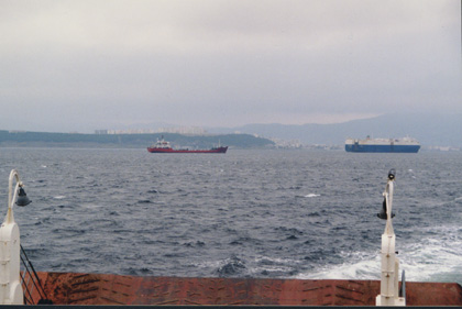 Some of the shipping traffic constantly passing up and down the Dardanelles. |