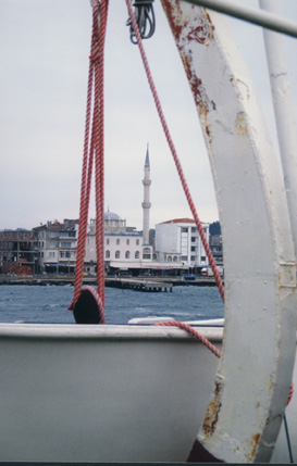 A view of one of the mosques in Gallipoli from a car ferry. |
