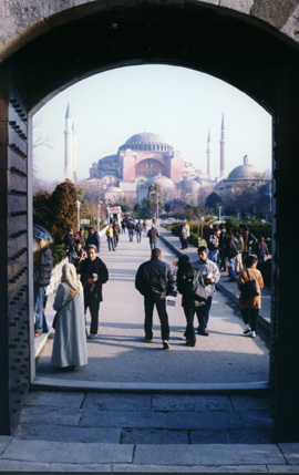 Immediately down the road is St. Sophia. It began life as a Christian Church over 1000 year ago. It is now also a Moslem Mosque. |
