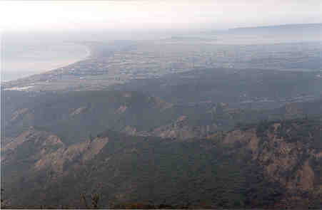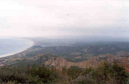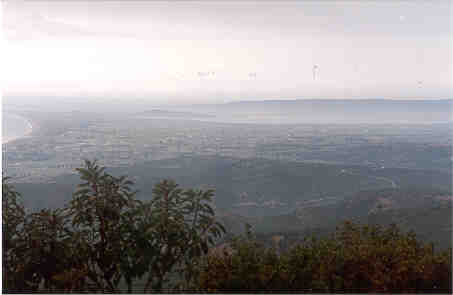 North Beach (or Ocean Beach), looking north towards Suvla Bay. This was the view the New Zealanders and Australians had of the British during the attacks in August. The Anzacs could see quite clearly the British sitting down doing nothing for two days while they were being killed at Chunuk Bair and Lone Pine. Later, the Anzac watched again as the British were slaughtered by the Turks when finally the British did try to make an attack, which then failed. Suvla Bay is straight ahead in the distance. On the left is Ocean Beach, or North Beach as it was sometimes called. In the middle is the Salt Lake, which dries up in the summer. |