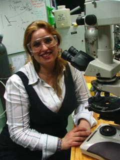 Optical microscopes like this one are useful for some crystal work. For more detailed study of materials Kate uses an electron microscope.