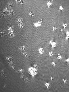 Microscopic crystals of calcite (CaCO3)growing on an artificial cell membrane. Kate studies the way the crystals grow as she varies the conditions of the solution or the membrane.