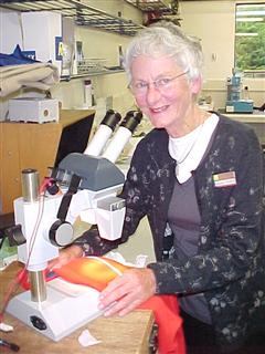 Beverley Ruddick is one of New Zealand’s top stain scientists. For over thirty years she has been helping to solve the problems sent by commercial laundries and dry cleaners to the Research Institute of Textile Services (RITS). This organisation used to be partially funded by the government, but was purchased by Canesis Network in 1999 and is now part of AgResearch. She not only studies stains, but all sorts of problems associated with fabrics, whether before it is made up into a garment, how it performs when worn, how to care for it in the wash, and how to rescue it after damage has been done.