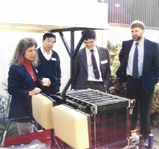 The first flow cell investigated by scientists at NASA (National Aeronautic and Space Administration) laboratories in the USA was an iron-chromium cell, but they soon discovered an fundamental problem with flow cells — there would always be some transfer of reagents across the membrane. Maria and her team realised that what was needed was a combination of half-cells where it wouldn’t matter if the reagents did mix. The answer was to use vanadium, which exists in four oxidation states — all soluble. On one half-cell vanadium (V) is reduced to vanadium (IV), while in the other half-cell vanadium (II) is oxidised to vanadium (III). Any ion that migrates across the membrane is quickly oxidised or reduced to the required state, so no long-term contamination occurs.