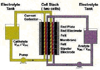 • On King Island (between Australia and Tasmania) 70 000 litres of electrolyte solution stores the energy from a wind farm to supply energy to the residents when the wind does not blow. This significantly reduces the islander’s dependence on fossil fuels for electricity generation.
