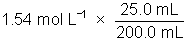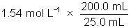 25.0 mL of a solution of hydrogen peroxide was diluted to 200.0 mL. The diluted solution was found to have a concentration of 1.54 mol L-1. What is the concentration of the original solution?