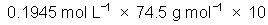 Express the concentration of 0.1945 mol L-1 NaOCl in g/100 mL. M(NaOCl) = 74.5 g mol-1.