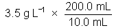 10.0 mL of a solution containing 3.5 g L-1 Cl- is diluted to 200.0 mL. The new concentration is: