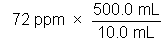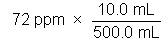 10.0 mL of a 72 ppm (parts per million) solution of Fe2+ was diluted to 500.0 mL. What is the new concentration?